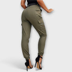 Cato cargo byxor har en trendig låg midja , smickrande passform och subtila detaljer. Knäppning med knapp och fickor ger en tuff, mångsidig look. Bär dem avslappnat eller elegant och skapa enkelt din perfekta outfit.