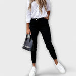 FORMAD ELEGANS: Höj din stil till en ny nivå med våra HÖGMIDJA BYXOR . Säg adjö till kompromissen mellan komfort och stil – Elastiska byxor Edera kombinerar det bästa av två värld så att du känner dig och ser fantastiskt ut att du än går under dagen.