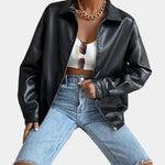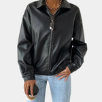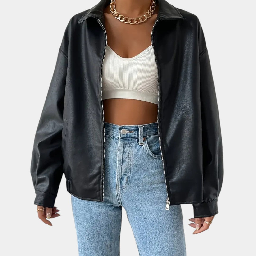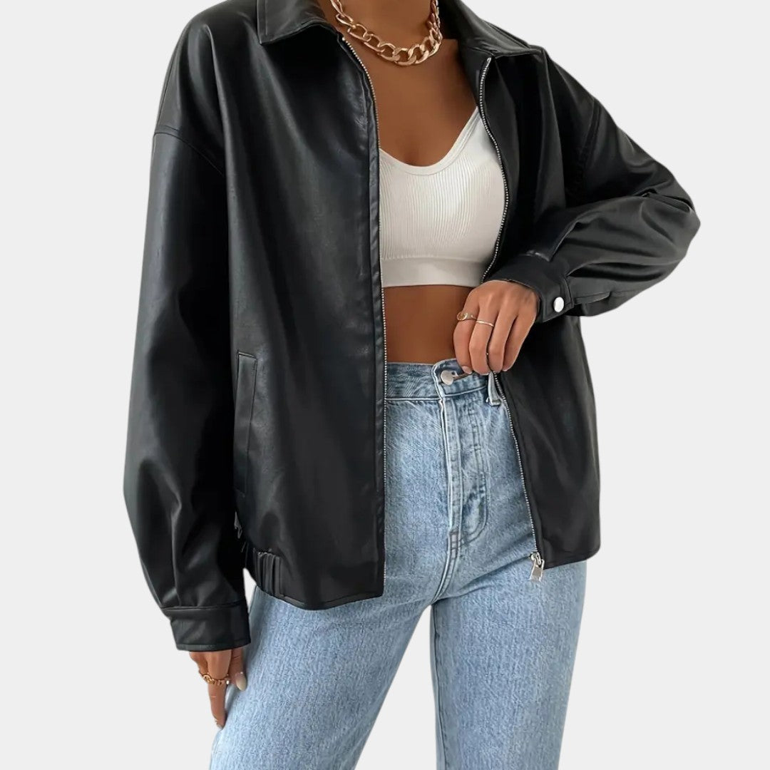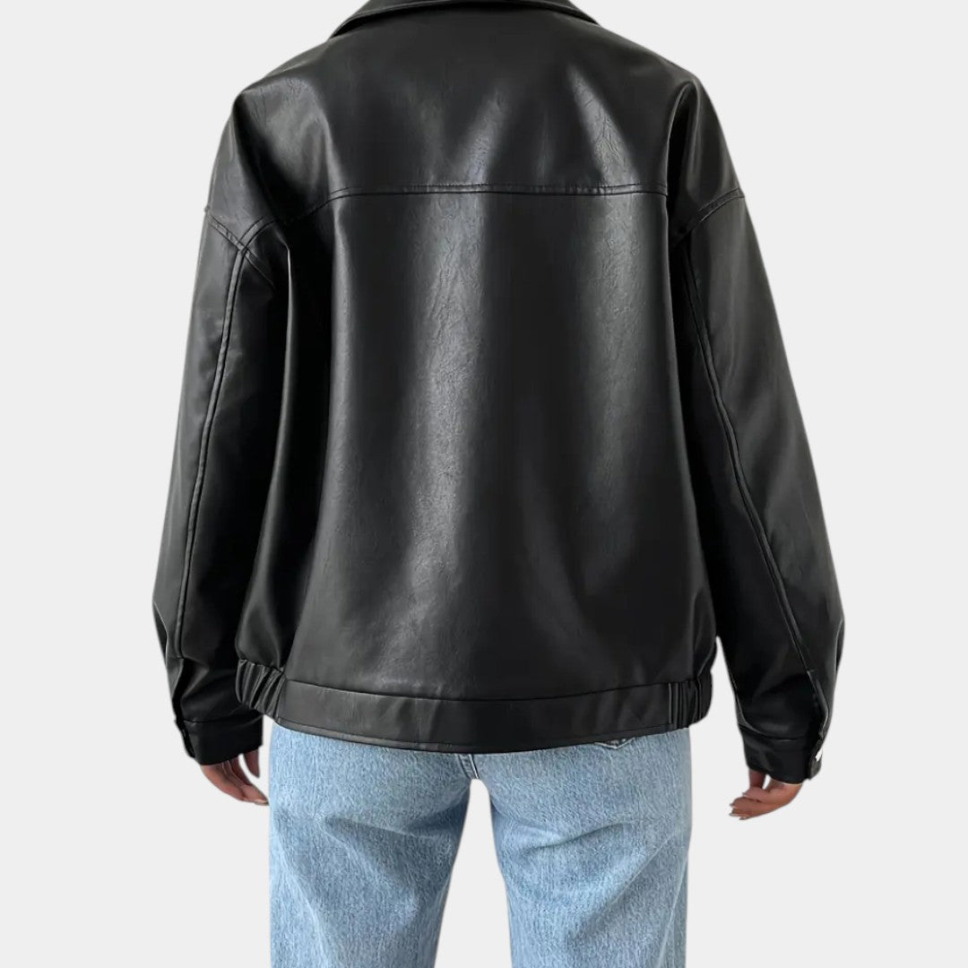 Minimalistisk jacka i ekologiskt läder med modern stil