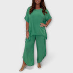 Upptäck vår bekväma och avslappnade tvådelade som förenar enkel elegans med maximal komfort. Perfekt för vardagsbruk, detta sätt kombineras en löst sittande blus med avslappnade långa byxor – idealiskt för vår, sommar och höst.