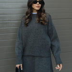 Detta sätter förenar sofistikering och komfort på ett helt naturligt sätt. Den moderna snittet och det mjuka tyget skapar ett lätt och elegant utseende, perfekt för dagar när du vill se fantastiskt ut och samtidigt känna dig bekväm. En mångsidig och tidlös bit som enkelt anpassar sig till olika tillfällen — från avslappnade promenader till mer eleganta kombinationer.