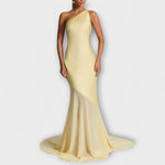 Öka din elegans med vår fantastiska vita maxiklänning med en axel, som är designad för formella kvällar, bröllop och prestigefyllda evenemang. Det genomskinliga kanten ger en touch av raffinerad stil och gör den till det perfekta valet för varje speciellt tillfälle.