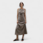 Utan ansträngning eleganta maxiklänning i linneblandning med axelband