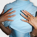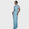 •  Långa klänningar med en utmärkande design: Oregelbundenheten av sjalen och den blå färgen erbjuder en trendig look.