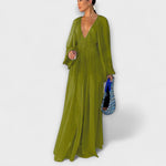 Evka ™ |Eleganta plisserade klänningar med långa ärmar