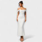 Ione ™ | Bodycon-klänning med avskurna axlar och rynkor