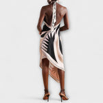 Vi presenterar våra fantastiska, knälånga satin klänningar som omedelbart lägger stil till din samling. Detta är en elegant halter halsringning och en bekväm lös passform , perfekt för varje kort semester eller avslappnad utflykt.