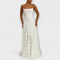 Dessa exklusiva vita blommiga spetsmaxiklänningar förenar tidlös elegans med en touch av modern glamour. Med sina fina spaghettiarmband och åtsittande topp skapar dessa klänningar en smickrande A-linjeform som vackert framhäver din figur.
