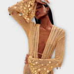 Skapa din stil med våra fantastiska guldstickade klänningar, designade för att få dig att stråla vid varje tillfälle. Med en djupt V-ringad hals och utvidgade kombinerar dessa klänningar elegans med en touch av lekfullhet tack vare sina festliga paljett detaljer .