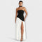 • Kontrastdesign: Fängslande svart topp utan axelband kombinerat med en flödande vit kjol för en högmodig look.