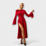 Willa ™ |Midi klänning med avskurna axlar och volangärmar