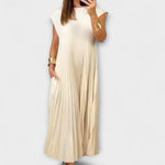 Attraktiv design: Den lösa A-linjen säkerställer en luftig, flödande passform. Ärmarna och den rundade halsringningen ger en touch av minimalistisk charm. Med praktiska sidofickor är den perfekta för informella utflykter eller eleganta tillfällen.