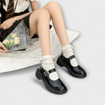 Dessa Mary Jane-skor förenar klassiska elegans med en modern touch. Deras feminina design med justerbar rem erbjuder en perfekt kombination av komfort och stil, lämplig för både vardagligt bruk och speciella tillfällen. Den subtila glansen och tidlösa silhuetten tillför din outfit charm och självsäkerhet. Perfekt för kvinnor som älskar en kombination av raffinerad stil och praktisk funktionalitet.