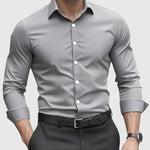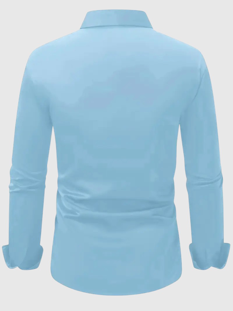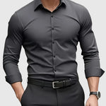 Skjortan med långa ärmar Federico är noggrant skuren för att passa perfekt på kroppen utan obehaglig känsla av tryck. Den moderna slim fit skärningen framhäver figuren och ger ett elegant, självsäkert utseende från alla vinklar. Oavsett om du bär den instoppad eller löst över byxorna, behåller den enkelt sin form och stil.