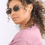 Upptäck våra solsken glasögon Dominica, tillverkade av högkvalitativ metall med slät gyllene yta. Rektangulär design och polariserade linser gör dessa solglasögon till den perfekta modeaccessoaren för varje outfit.