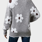 Denna tröja kombinerar komfort och stil i ett unikt plagg. Den mjuka V-ringningen och det moderna blommönstret gör den till det perfekta valet för vardagsbruk såväl som för speciella tillfällen. Den tillför en charm till din outfit och ger en elegant men ändå avslappnad känsla.