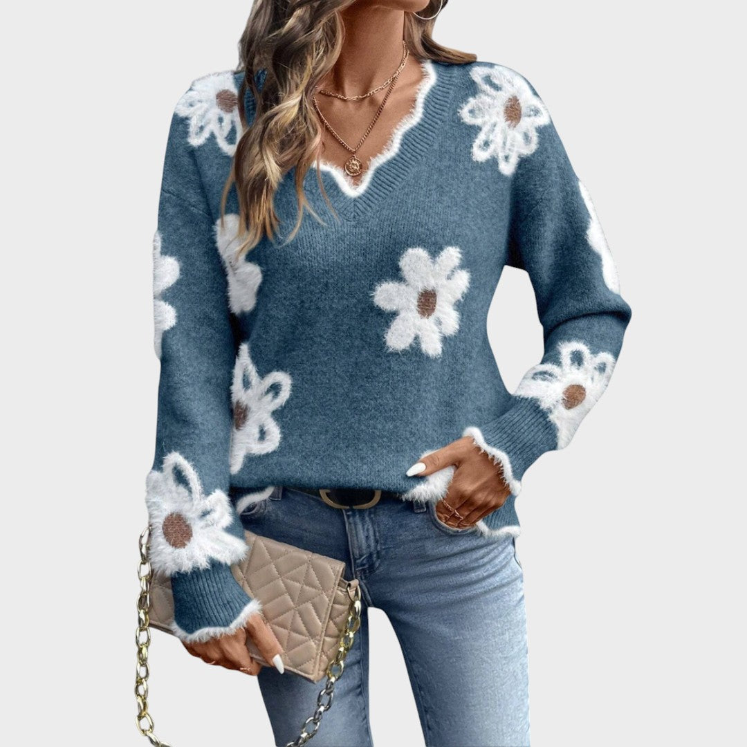 Adriana ™ |Elegant blommig tröja med V-ringning