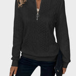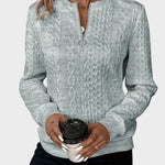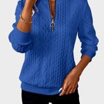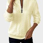 Denna damstickade tröja med dragkedja kombinerad värme och modern mode, vilket gör den till en oumbärlig del av din avslappnade garderob. Tillverkad av mjukt och hållbart tyg, erbjuder den en lös passform som gör att du kan se elegant ut samtidigt som du håller dig varm.