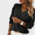 Noemier damtröja med V-ringning personifierar tidlös elegans och komfort. Med sin smickrande V-ringning och avslappnade passform erbjuder denna tröja den perfekta kombinationen av stil och bekvämlighet. Oavsett om det är en vanlig dag, på kontoret eller för avkopplande helgäventyr – Noemier är alltid rätt val.