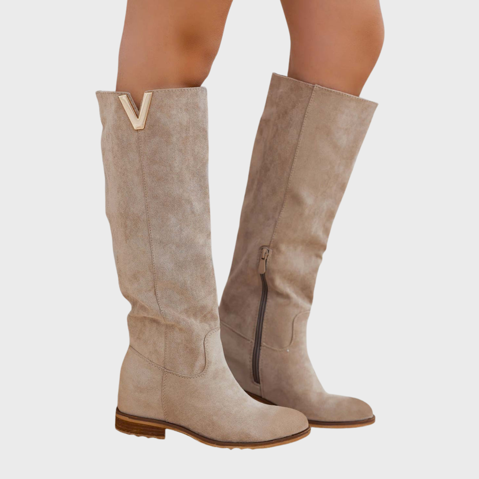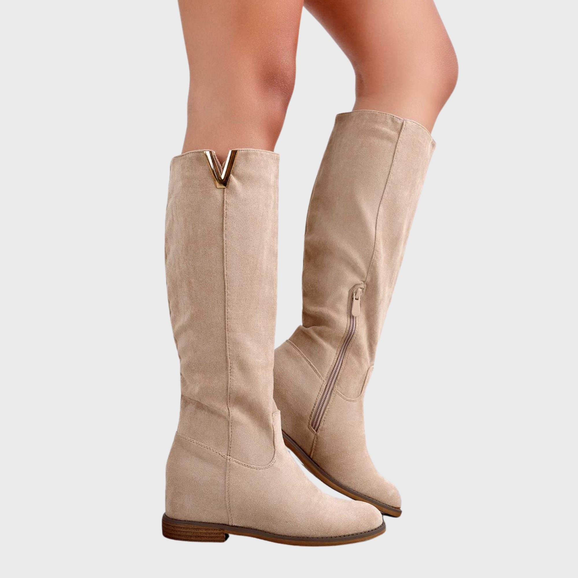 Höga ankelstövlar Lenka förenar tidlös elegans med modern komfort. Den genomtänkta designen med lätt avsmalnande tå och dold kil skapar en smal silhuett och säkerställer maximal komfort hela dagen. Den subtila metalldetaljen i form av ett V ger stövlarna en touch av glamour och gör dem unika.
