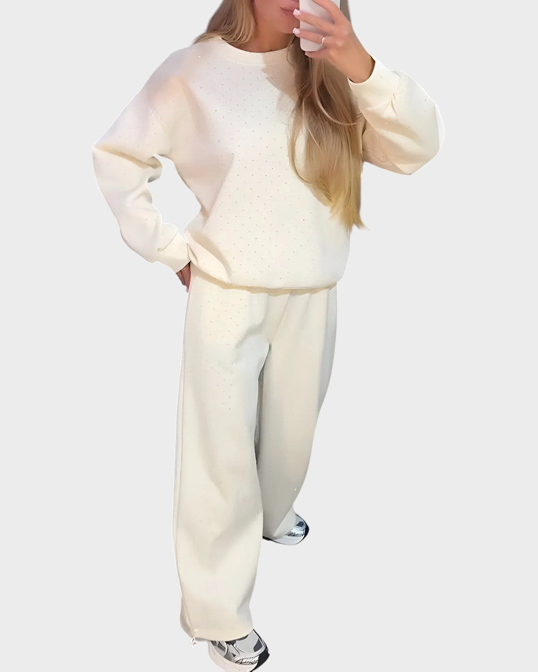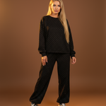 Denna sats är skapad för dem som älskar att kombinera komfort och elegans i en och samma look. Den mjuka tyget och den avslappnade passformen ger rörelsefrihet, medan den subtila glansen tillför en touch av sofistikering. Perfekt för vardagliga stunder eller avslappnade utflykter med stil.