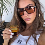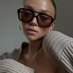 Upptäck Zahra Solglasögon: vintage-inspirerade pilotglasögon med kanelfärgade linser som kompletterar varje outfit!