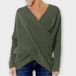 ✔️ Elegant design med V-ringning : Den trendiga korsade V-ringningen och den asymmetriska fållen ger denna tröja den rätta charmen.
