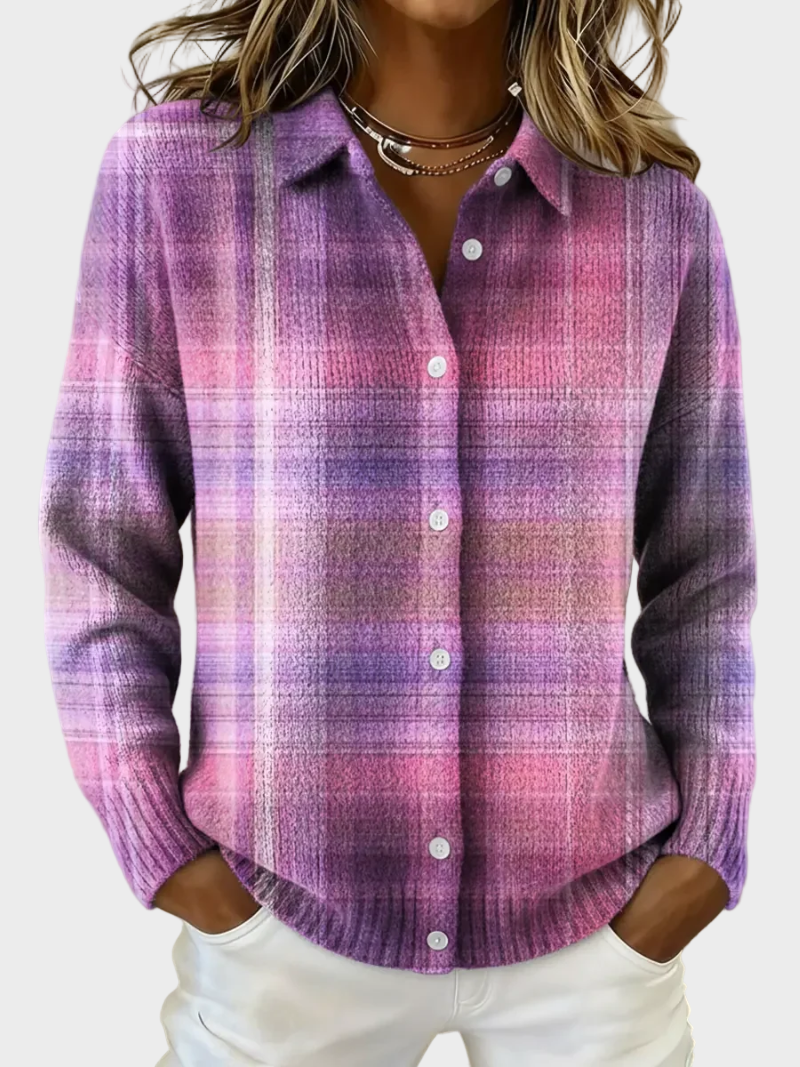 Blusen Luna kombinerar djupblått med varma rosttoner för en balanserad och stilfull look. Rutmönstret ger helheten ett lugnt men modernt uttryck. Den klassiska kragen och knäppningen bidrar till en tidlös design som passar i många outfits.