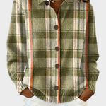 • Rutigt mönster i naturliga nyanser: grön, beige och en orange detalj